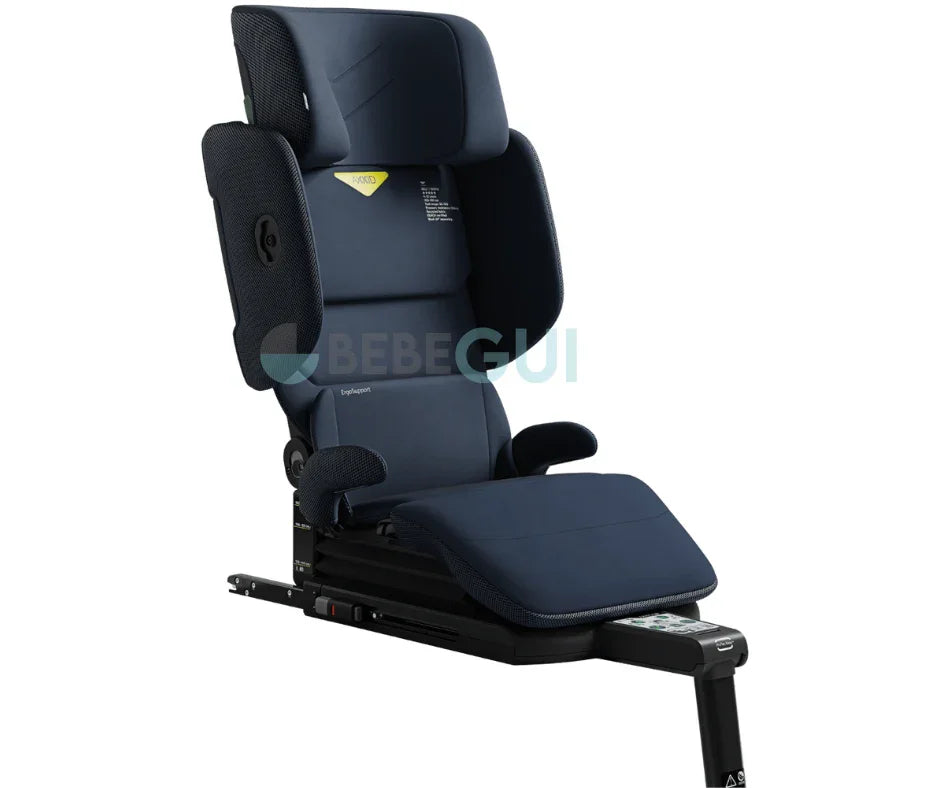 O único assento elevatório com encosto alto do mundo com assento patenteado e elevável. Elevando a segurança e permitindo que seu filho se beneficie dos sistemas de segurança do carro, como airbags laterais, pré-tensionadores e posicionamento ideal do cinto de segurança sem folga.