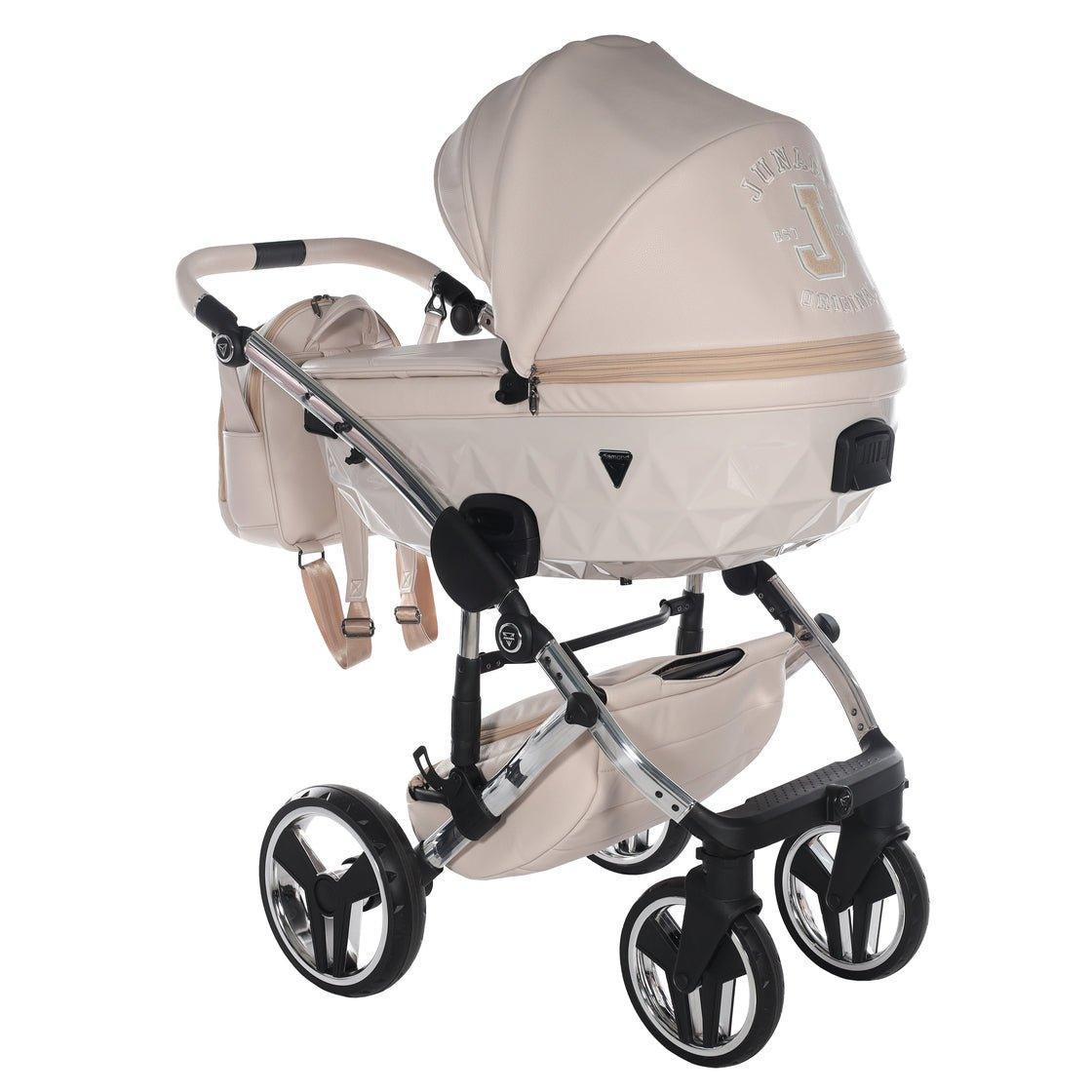 Os detalhes fazem toda a diferença. Todos os carrinhos Junama são fornecidos com uma alcofa e cadeira de passeio, sendo a alcofa o sistema de passeio ideal para recém-nascidos. Além disso, incluímos acessórios exclusivos como uma carteira da mamã, rede mosquiteira, capa de chuva, colchão muda de fraldas e suporte de copos, pensados para tornar cada passeio uma experiência prática e confortável.